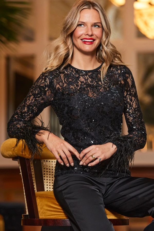 - On-trend feather trims for maximum impact