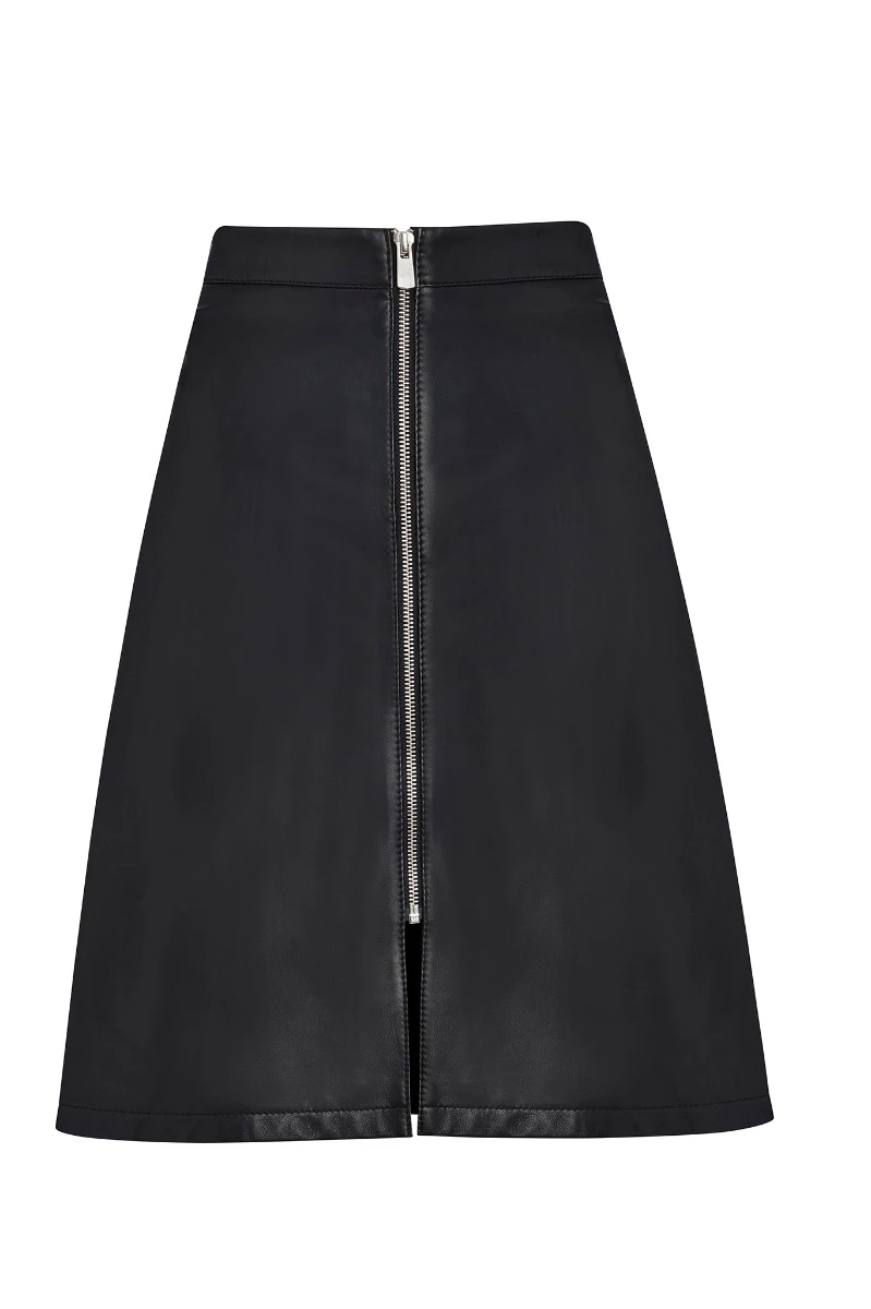 Black Leather Zip Front A-Line Skirt -Opal & Oak Store a19sl008 100