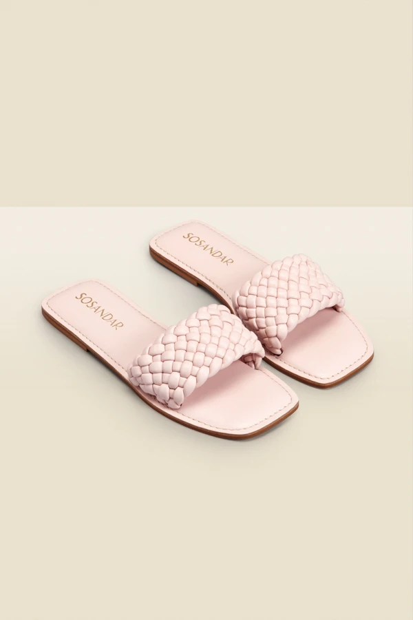 Lilou Pale Pink Woven Leather Square Toe Flat Sandals