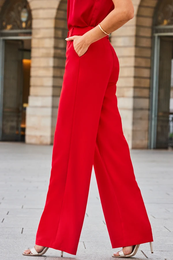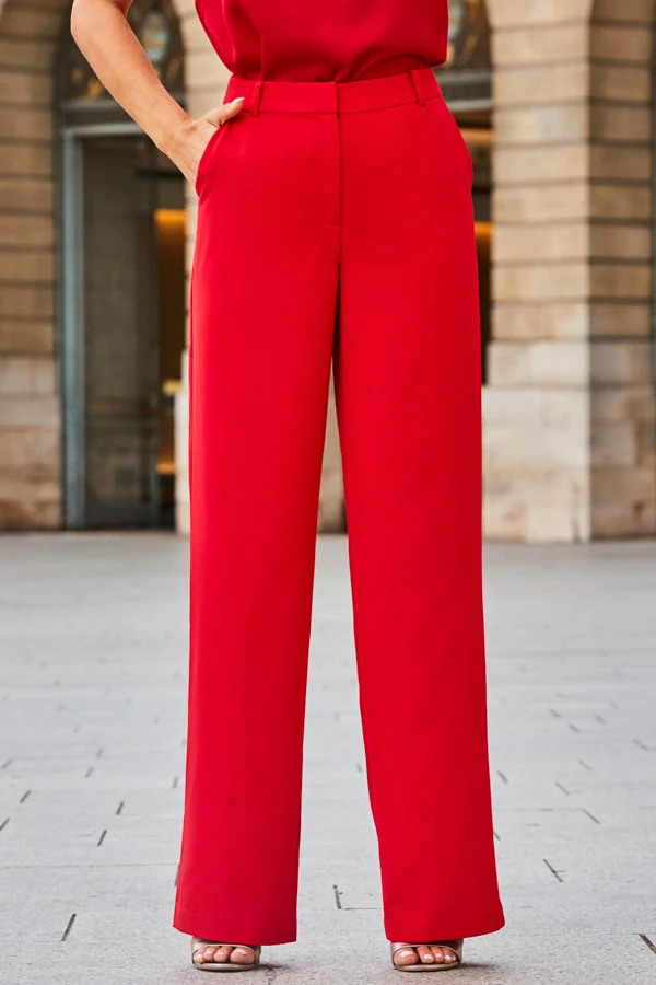 Red High Waisted Wide Leg Trousers