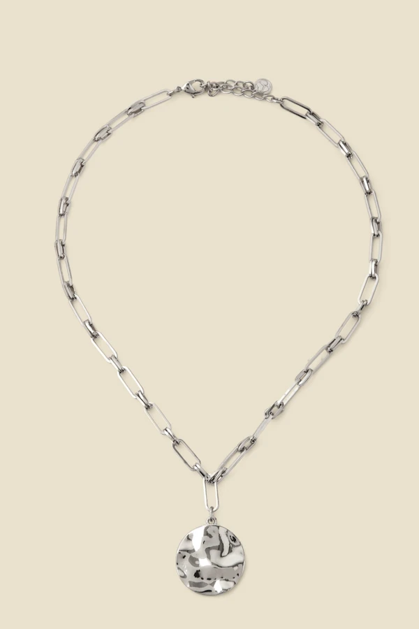 - Stunning hammered coin pendant detail