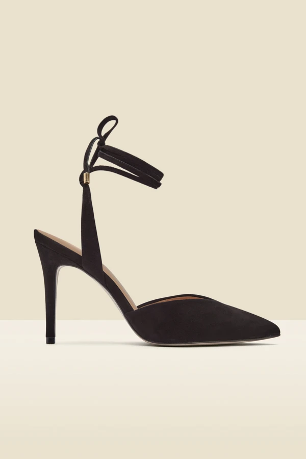 Valeria Black Suede Pointed Toe Court With Ankle Wrap